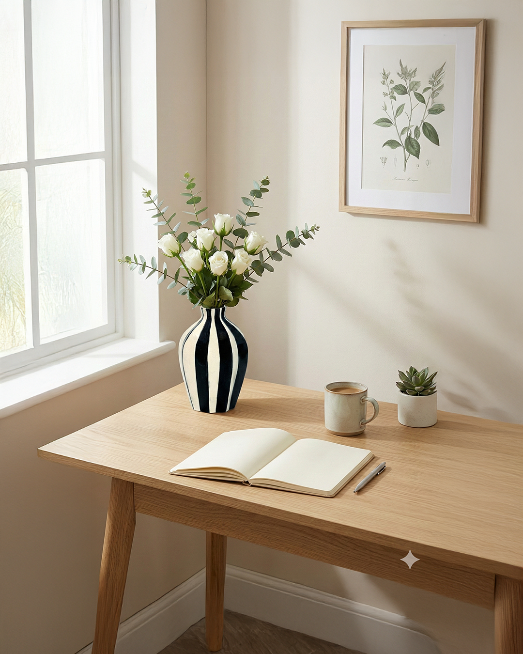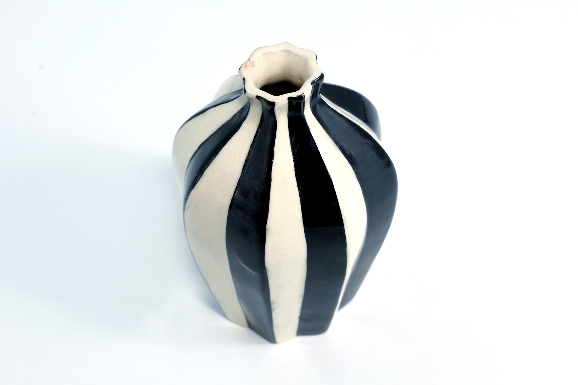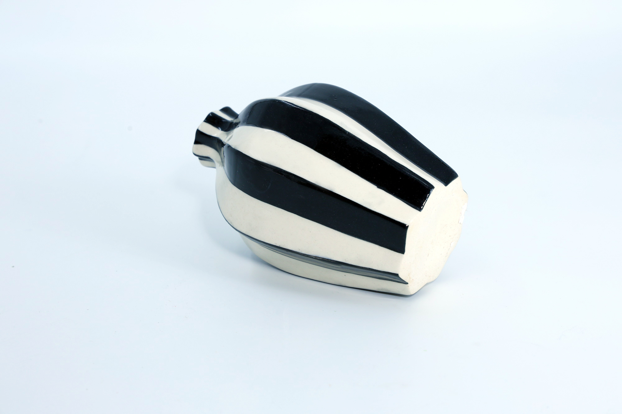 Add a modern and sophisticated touch to your home decor with the Black Strip Flower Vase. Handcrafted with precision, this ceramic vase features an elegant cylindrical design accented by bold black stripes on an ivory base. The timeless color combination and sleek finish make it a versatile piece that complements a variety of interior styles.