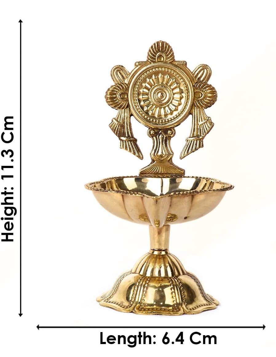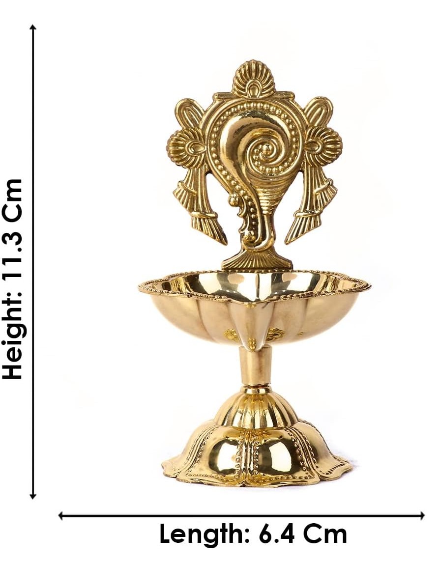Brass Shank Chakra Diya is a beautifully crafted traditional oil lamp made from high-quality brass, featuring the auspicious symbols of Shankh (conch) and Chakra, which represent purity, protection, and divine energy. Ideal for daily pooja, Vishnu and Lakshmi worship, and festive rituals, this diya adds spiritual significance to any prayer space. Its sturdy design, rich golden finish, and fine detailing ensure durability, long-lasting shine, and a timeless traditional appeal, making it perfect for home temples and auspicious gifting.