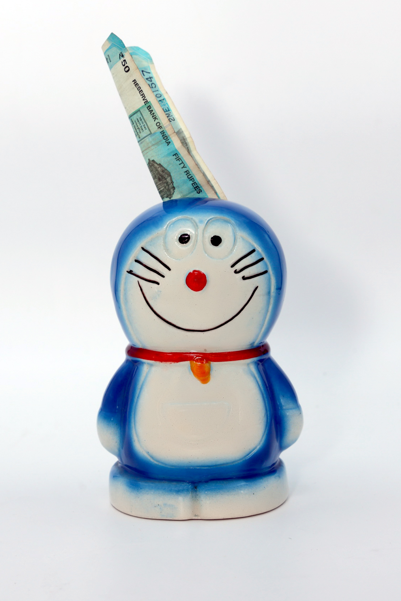 Ceramic Doramon Shaped Money Bank – Multicolor
