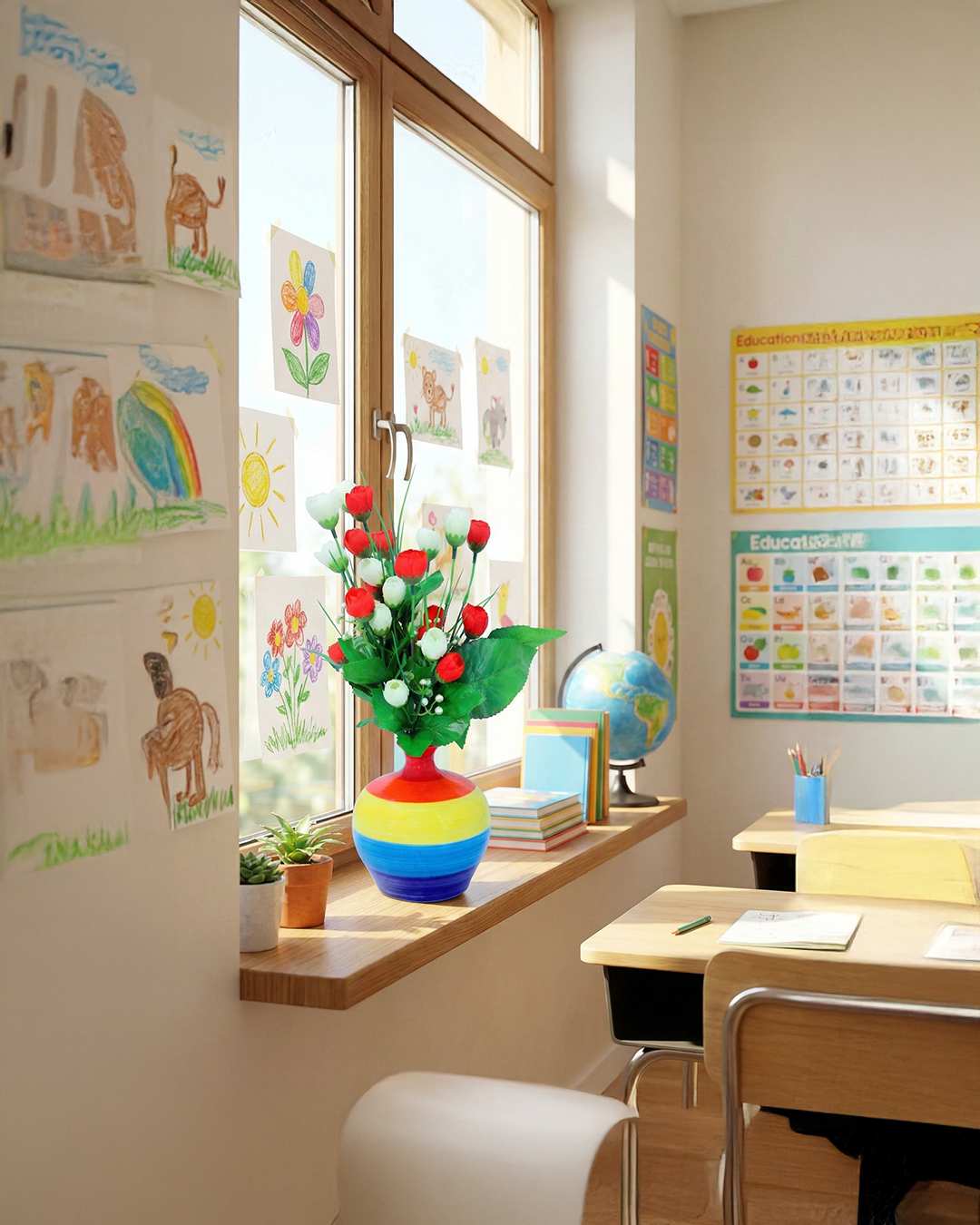 - Wipe gently with a soft, damp cloth to maintain its vibrant colors.