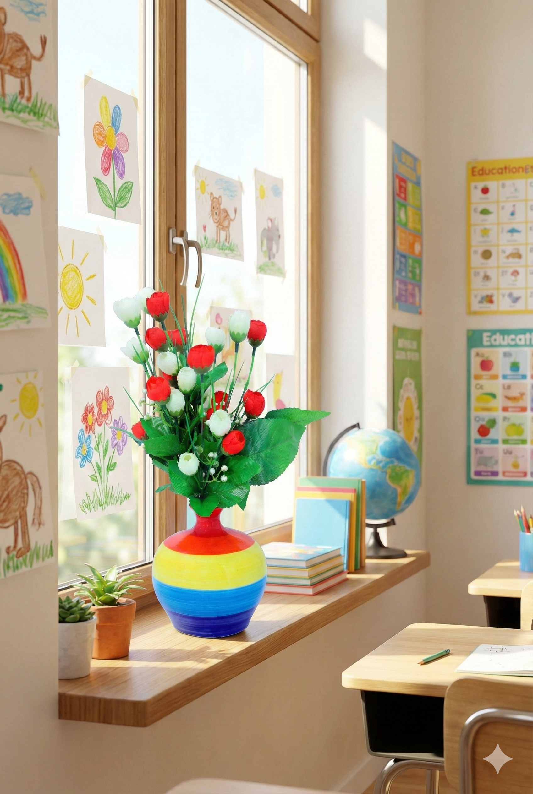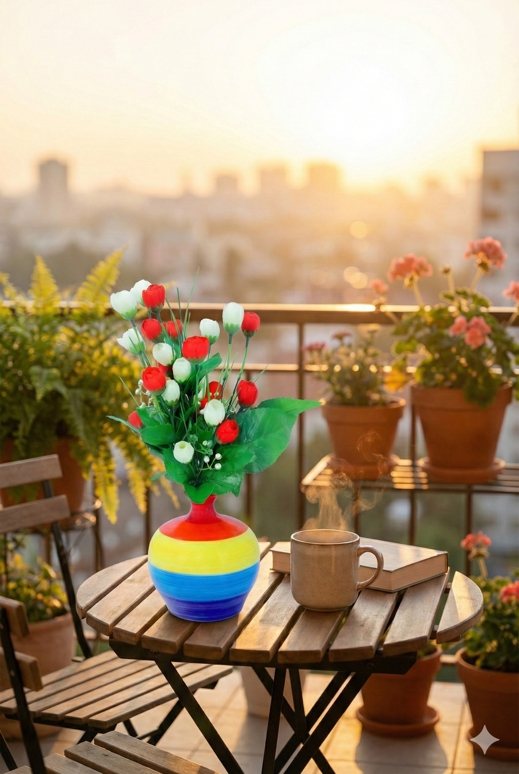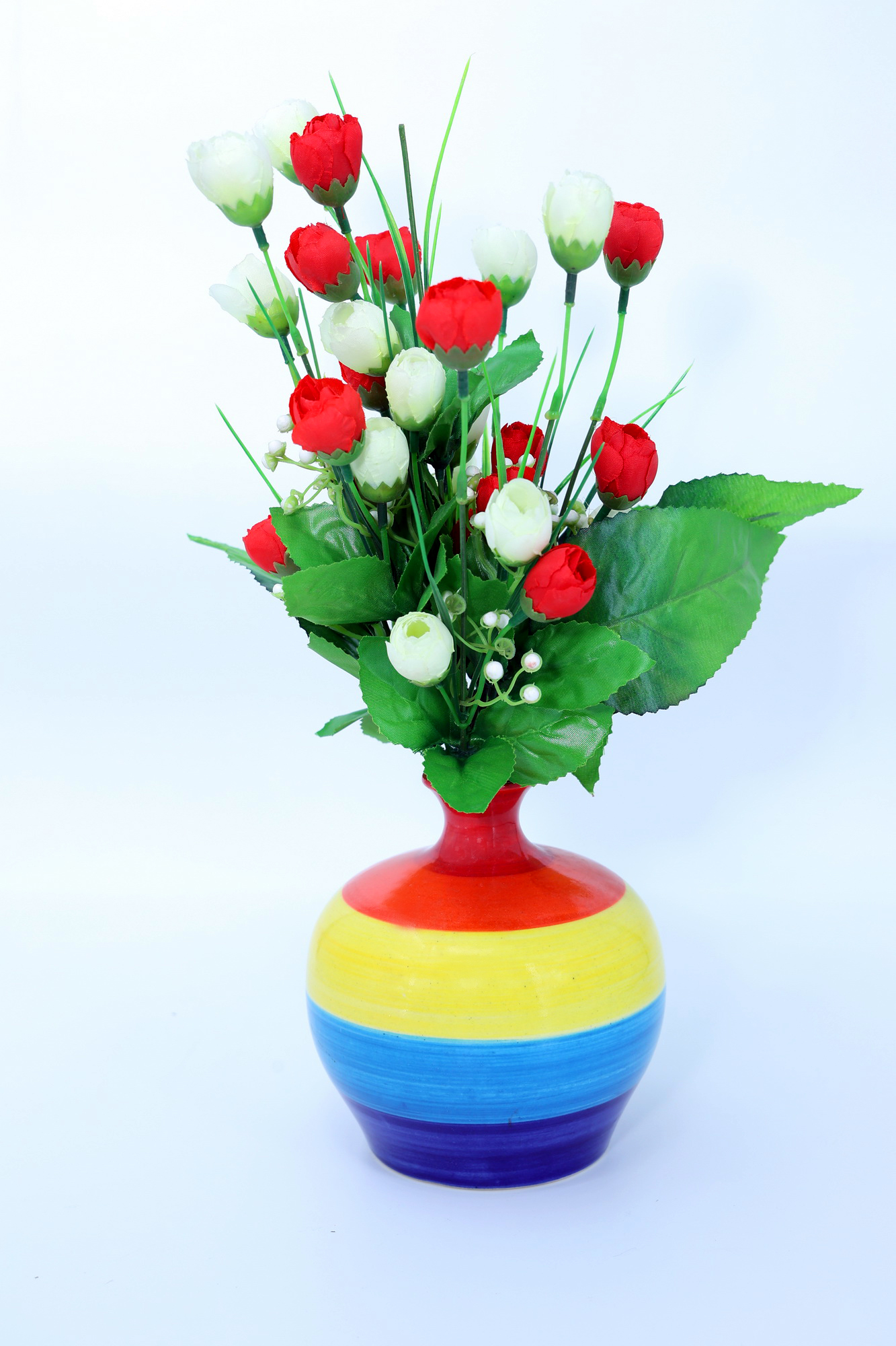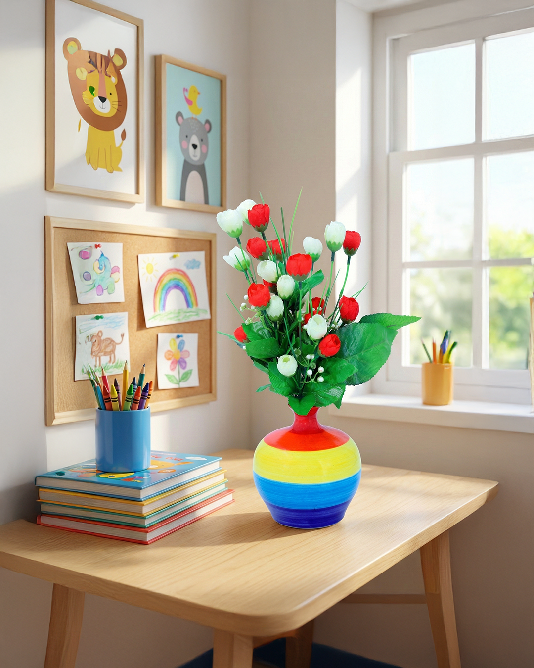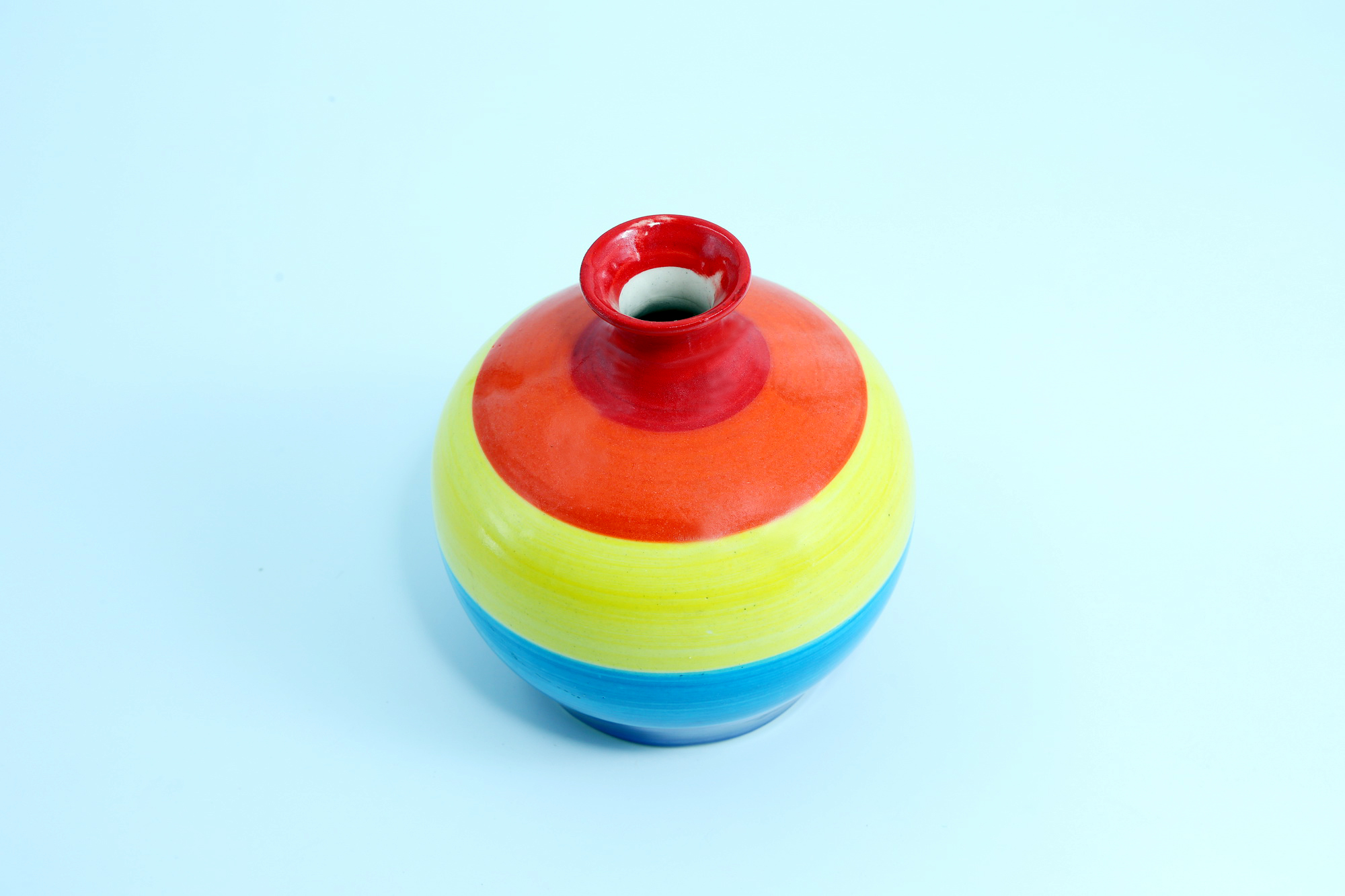 Add vibrancy and charm to your living spaces with the Multicolor Ring Flower Vase. This handmade ceramic vase features a striking ring design and a mix of vibrant colors, making it a true centerpiece for any decor. Its bold and artistic appeal is perfect for creating a lively and inviting ambiance in your home.